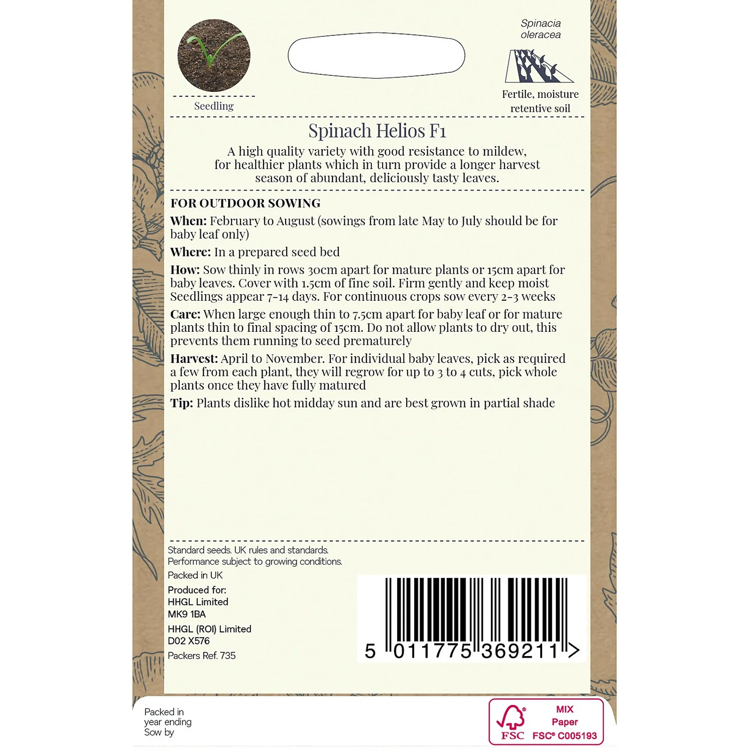 Country Living Spinach Helios F1 Seeds
