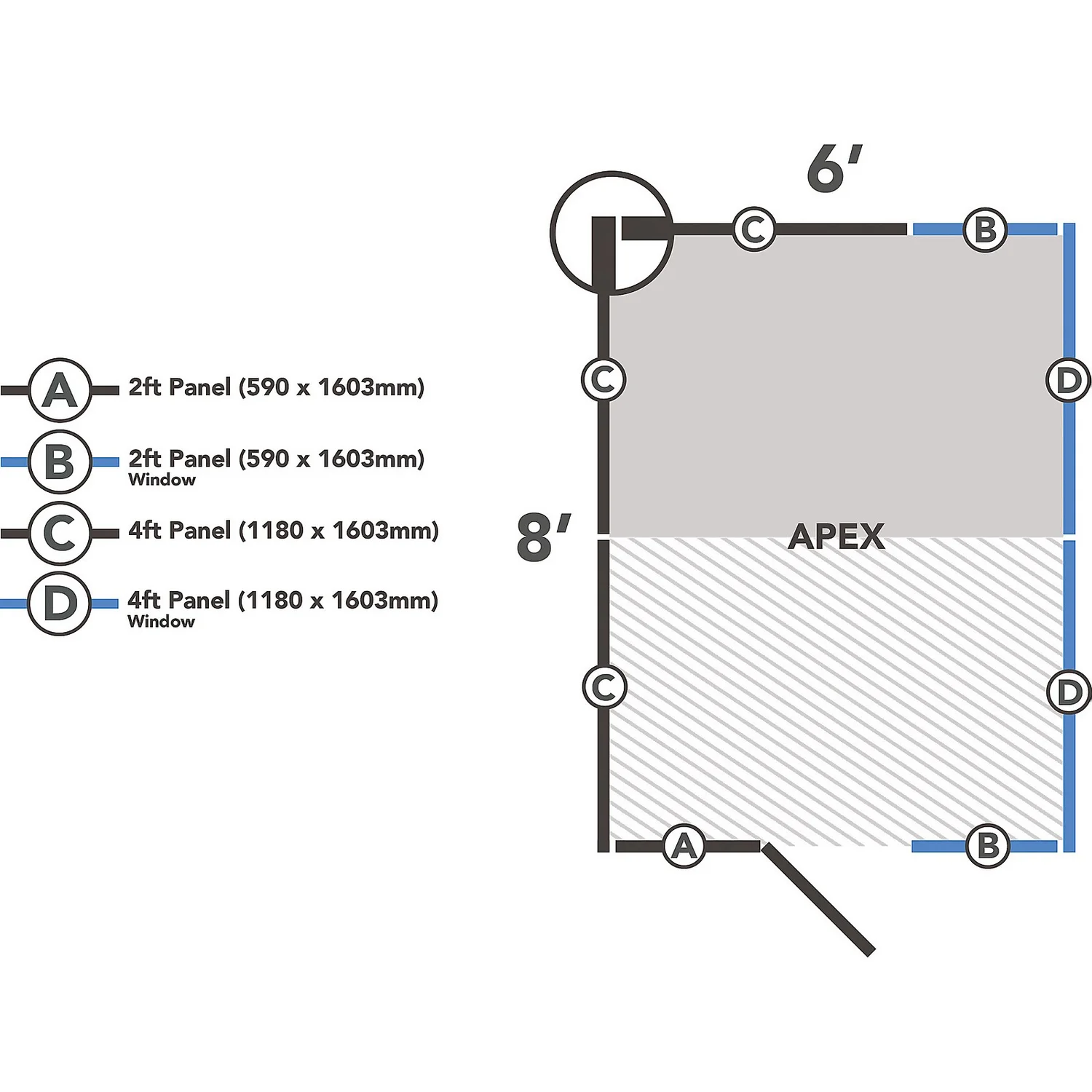 - Door can be placed at either end of the building.