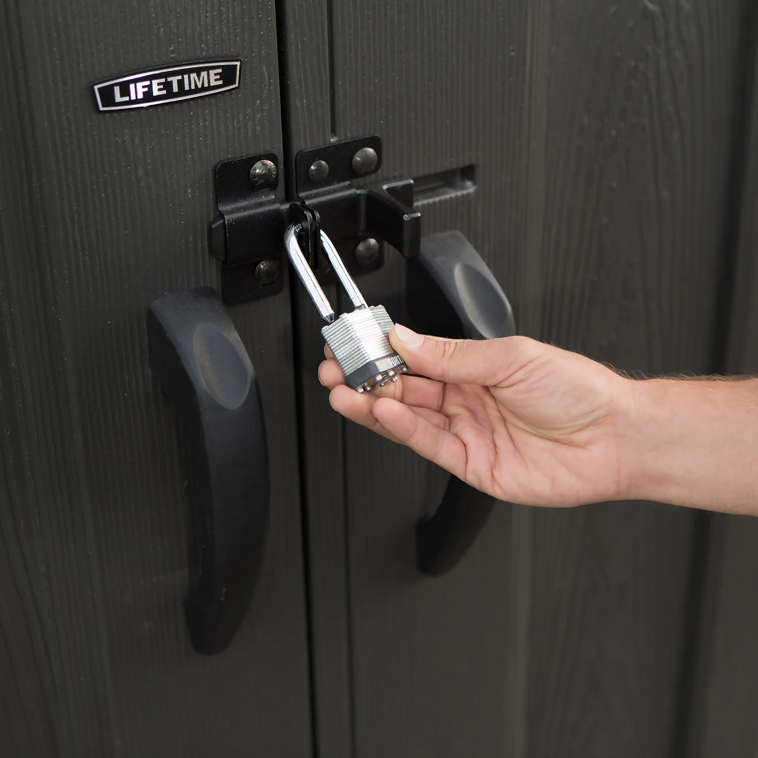 Lifetime’s 8-foot wide Outdoor Storage Sheds are the perfect solution to your storage needs. Built with durable, dual-wall high-density polyethylene, our sheds are steel-reinforced and low-maintenance. With various features including skylights, custom shelving, and much more, a Lifetime Shed is the perfect addition to your backyard.