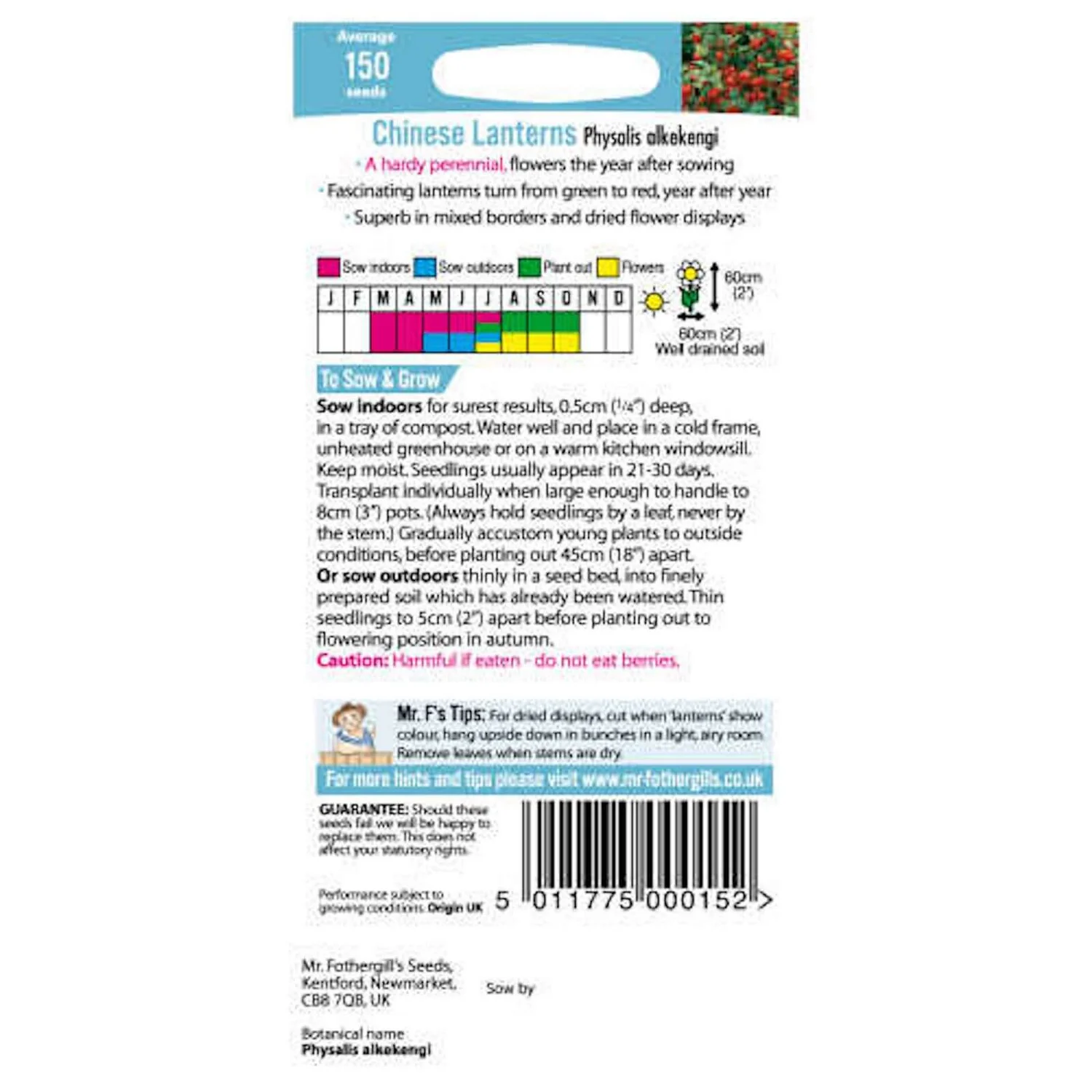 Chinese Lanterns (Physalis Alkekengi) produce creamy white flowers followed by remarkable ornate seed pods loved for dried flower arrangements. Perfect for mixed borders and cutting gardens.