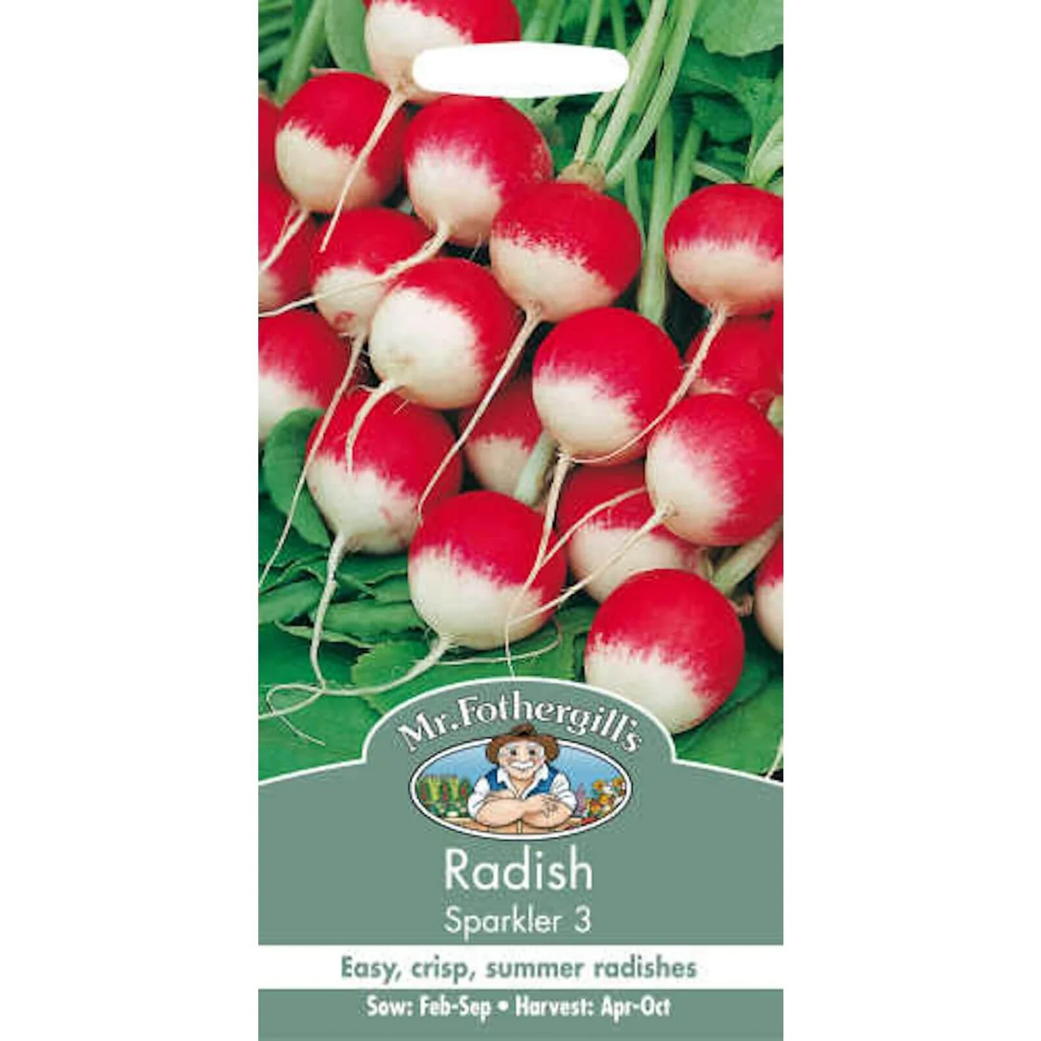 Radish Sparkler 3 (Raphanus sativus) produces delicious and crunchy tangy rounded roots with superb flavour.