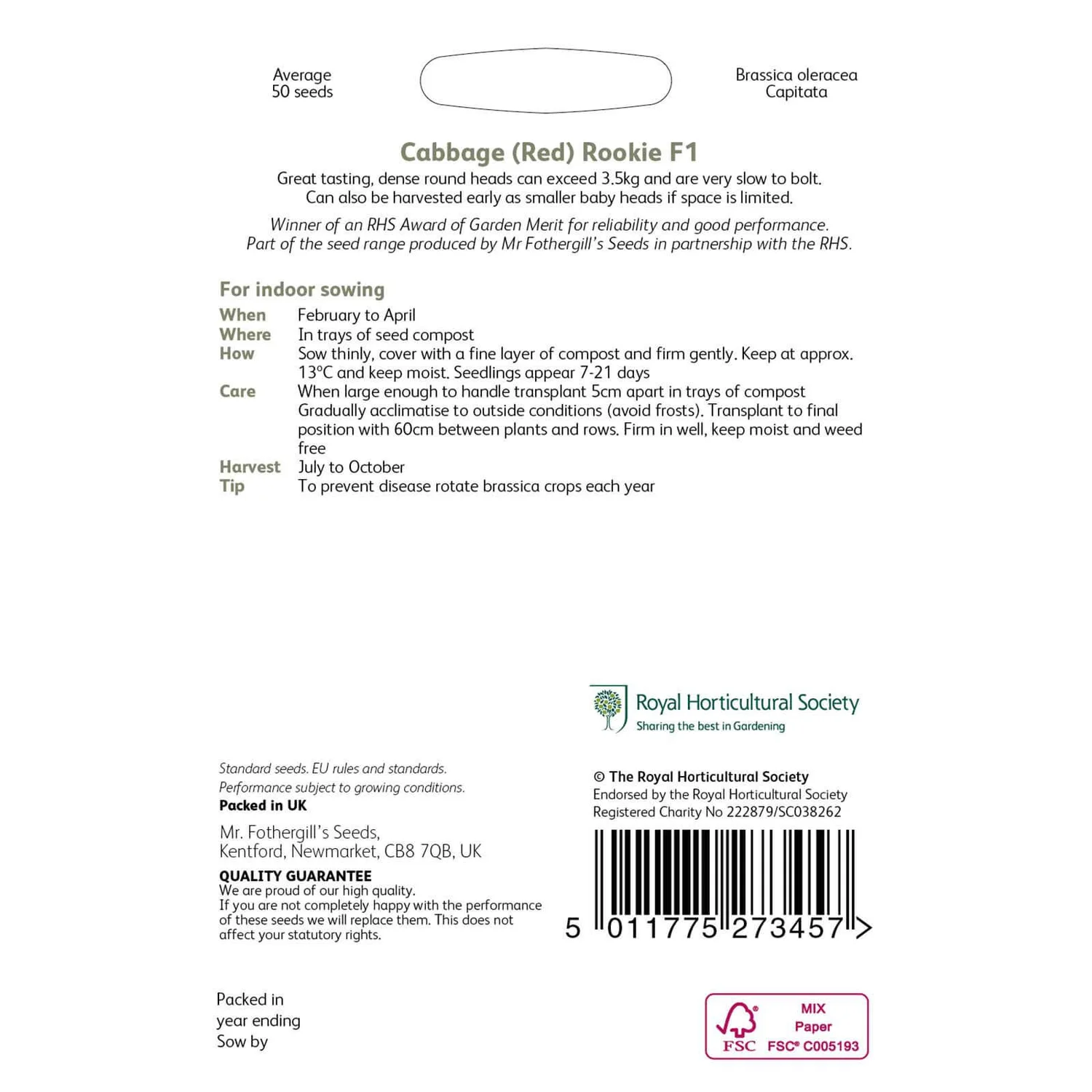 RHS Cabbage (Red) Rookie F1 Seeds -Shed And Soil Sales 12817439 2054833223762671