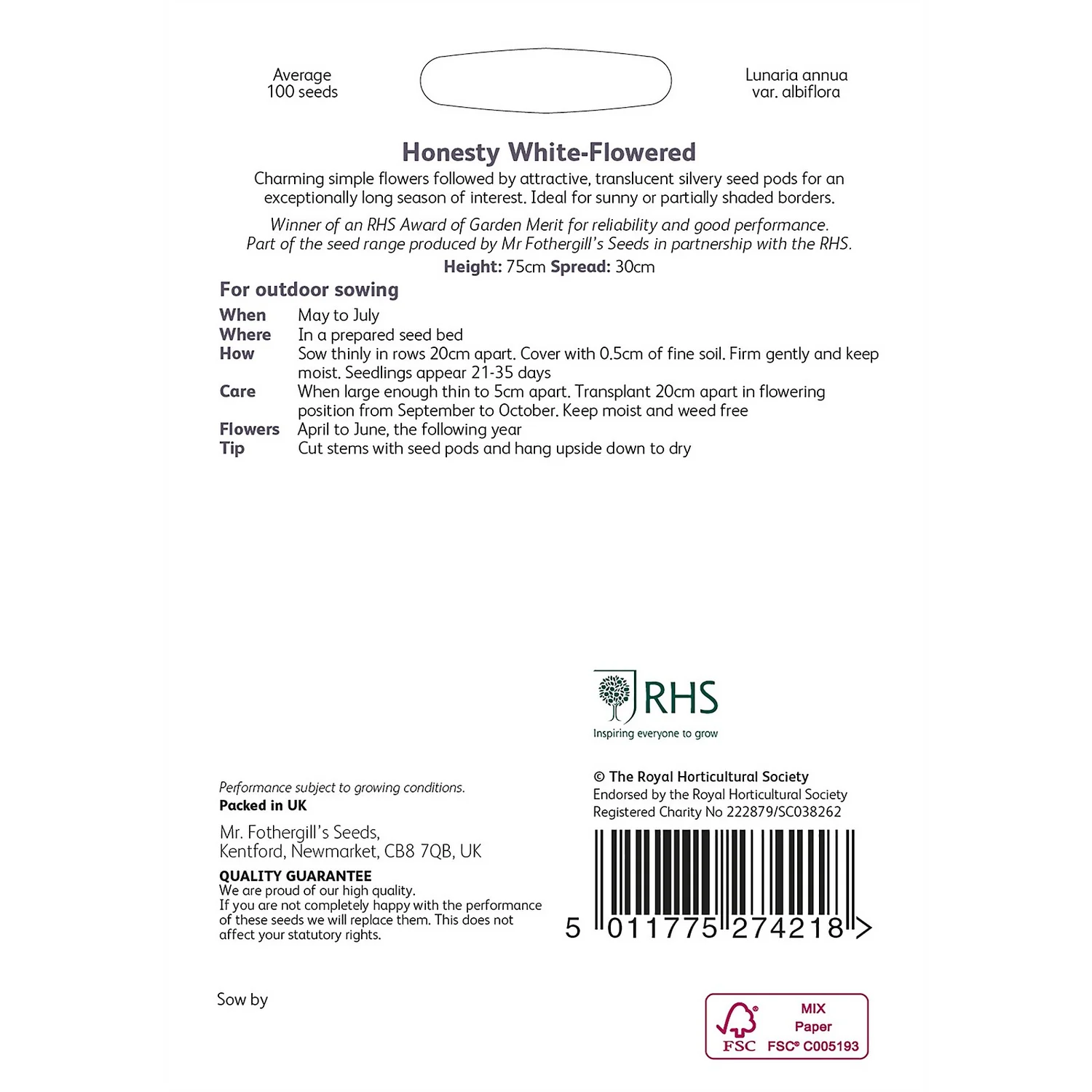 | Latin Name | Lunaria annua var. albiflora |