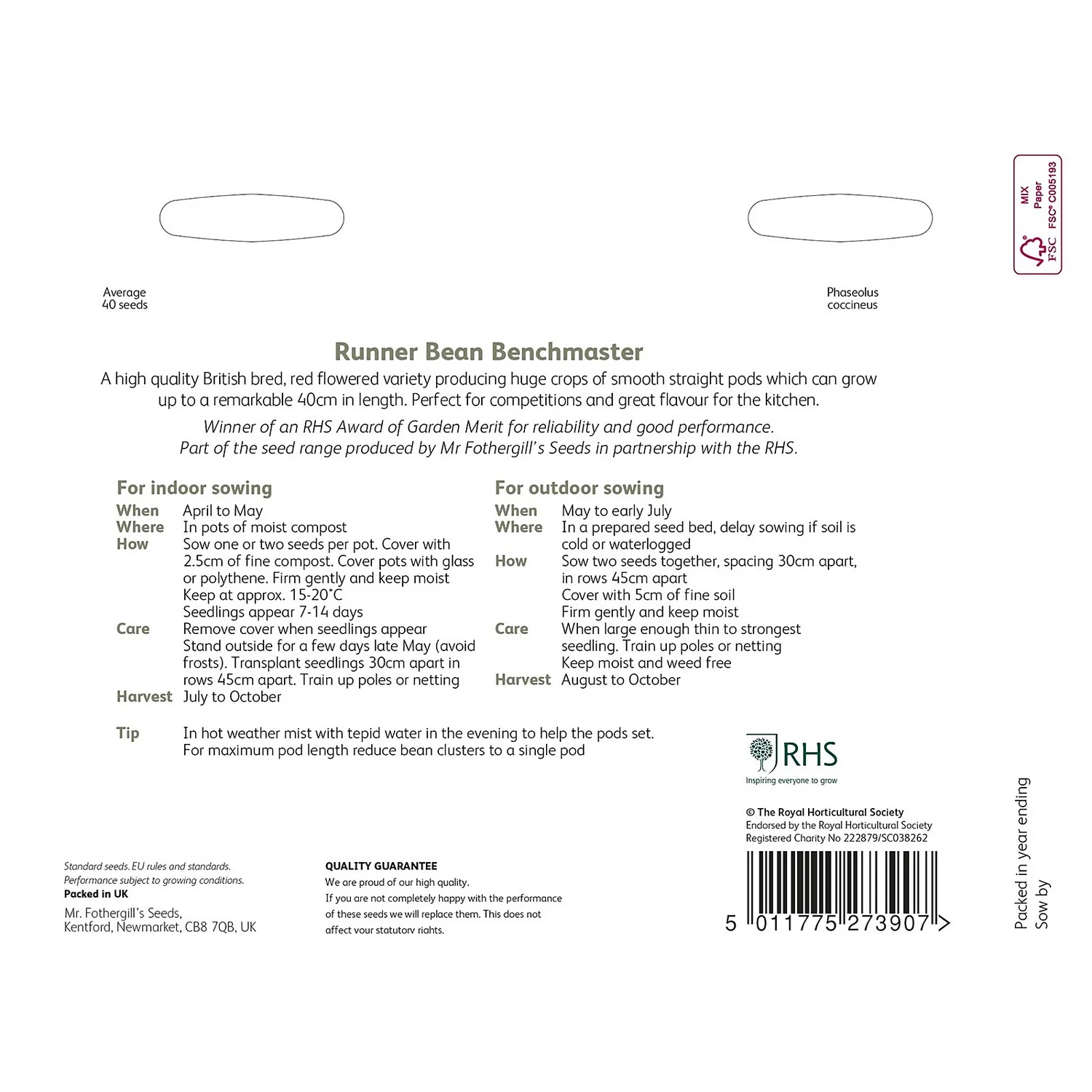RHS Runner Bean Benchmaster Seeds