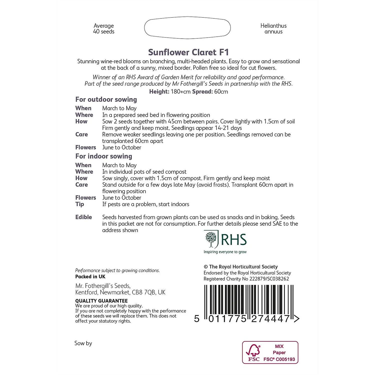 | Additional Information | Flower seeds |
