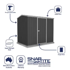 Handy steel storage unit for garden items. Includes superior hot dipped galvanising treatment – no maintenance ever required. Stylish pent roofed design will suit any outdoor space.